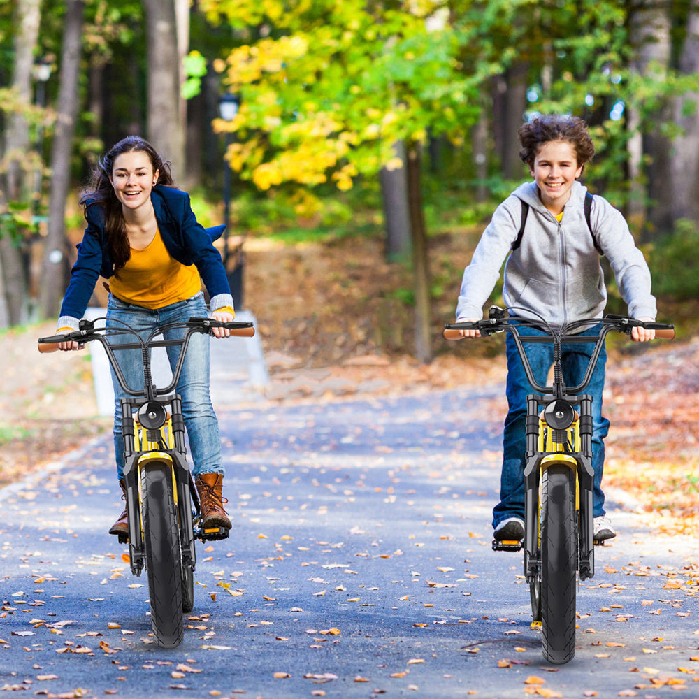 La e-bike de llanta ancha de 20" está diseñada para manejar una amplia gama de terrenos, desde calles de la ciudad hasta senderos accidentados. Esta versatilidad significa que puedes usar la bicicleta eléctrica para el transporte diario, aventuras de fin de semana y todo lo que hay en medio.