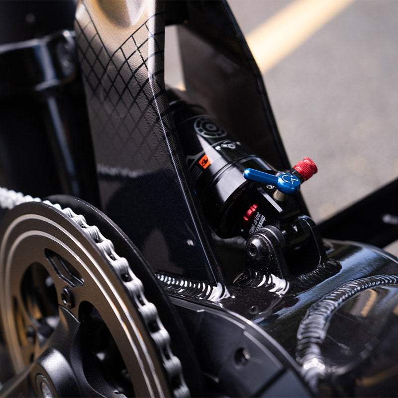 Equipado con amortiguador de aire DNM-38RC, amortiguación ajustable, ajuste suave y duro de la presión del aire con bloqueo.